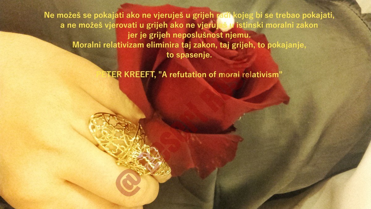 “Jer novi ateizam nije poput starog, teorijskog ateizma koji se ponosio što je intelektualno sastavljen od malo znanosti, antropologije i komparativne religije. Novi ateizam nije ateizam intelekta, nego ateizam volje; to je čin slobodnog i željnog odbacivanja moralnosti i njezinih zahtjeva. On započinje samoostvarenjem (afirmacijom samog sebe – moja napomena) i nijekanjem moralnog zakona.”